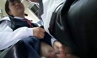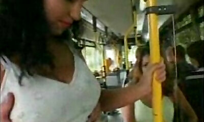 Buxomy, Asian brunette is getting molested in a public buss, but she likes it a lot