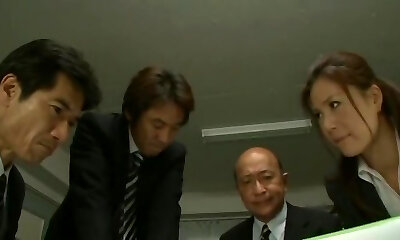 quatre méchants gorgent pound un timide secrétaire japonais dans le bureau dur